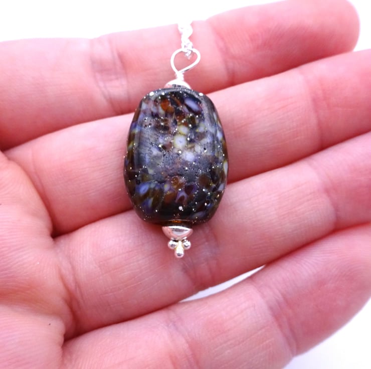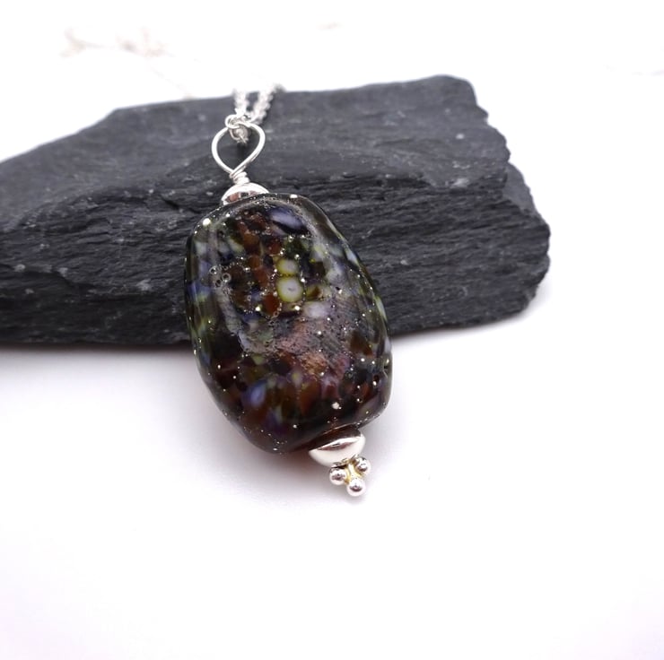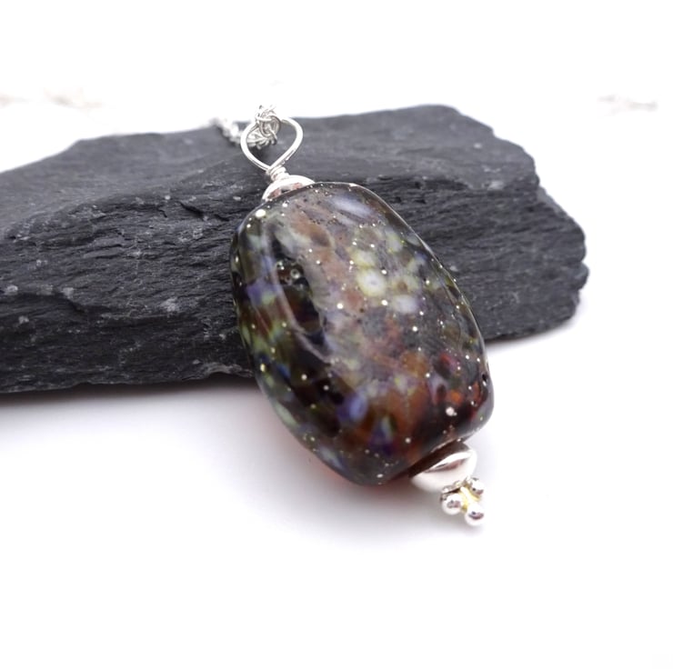 brown lampwork glass pendant necklace, sterling silver chain jewellery