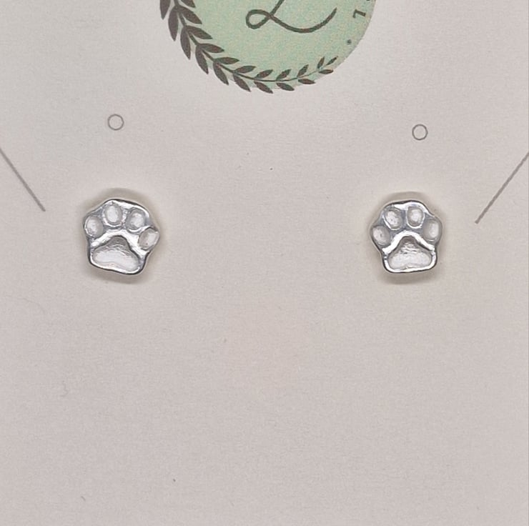These pawprint stud earrings are made from fine silver with sterling silver earrings posts and butterfly clips.