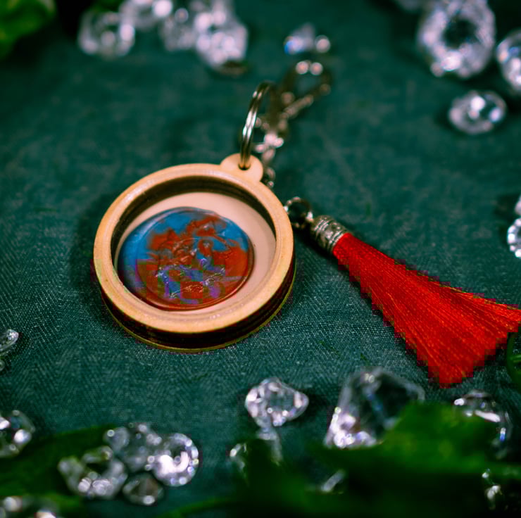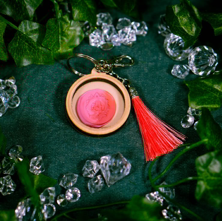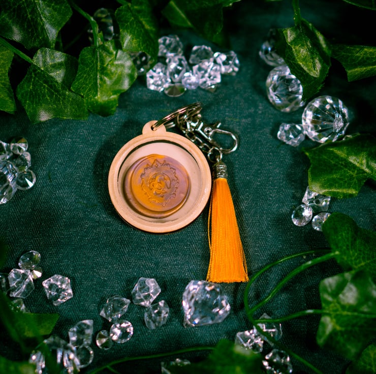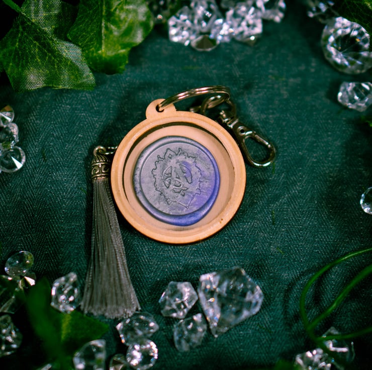 Introducing our vibrant round keychain, featuring Aetheria's magical crest with a tassel for a touch of charm. This colorful accessory not only keeps your keys organized but also serves as a symbol of your connection to Aetheria's enchanting world.