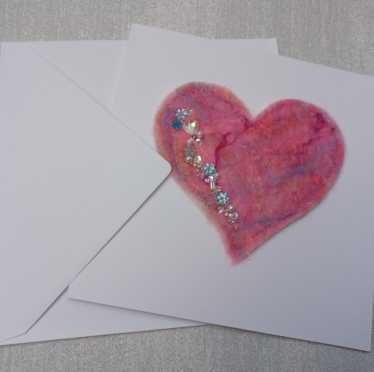 The heart is mounted onto a blank white card, the card is a large 17 x 17cm square and is 300gsm stock.