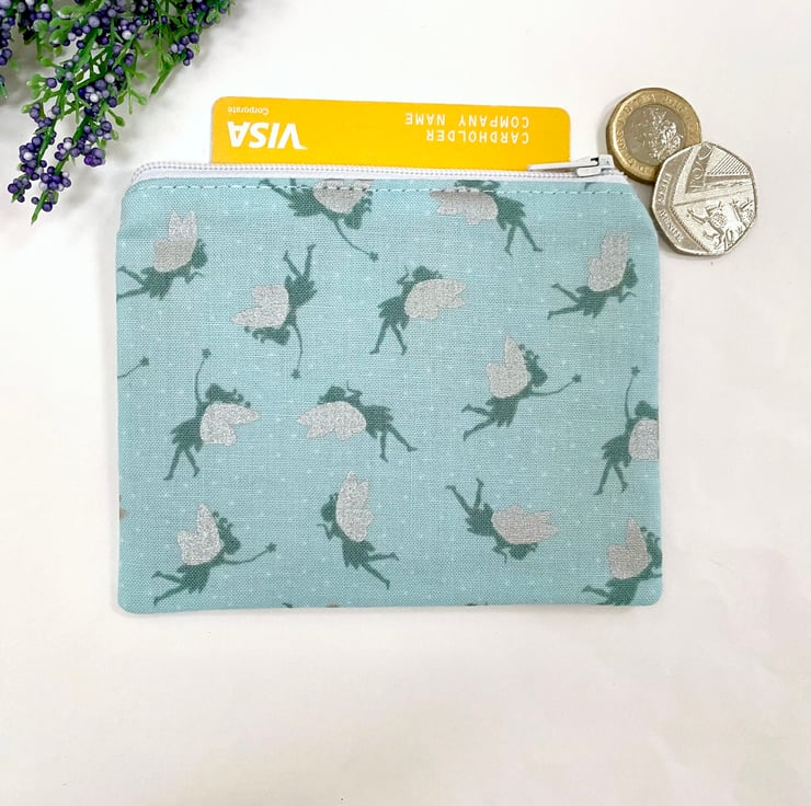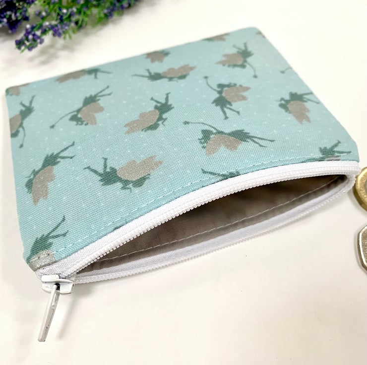 Handmade using Irene and Lewis fairy cotton fabric with a coordinated cotton lining and a zipper to keep all of your items safe. Silver fairy wings make it even more magical.