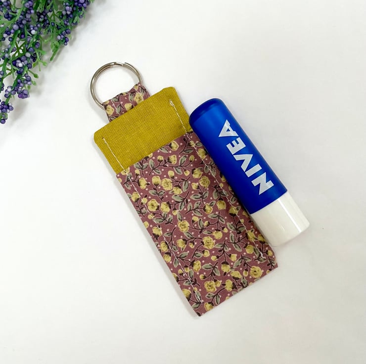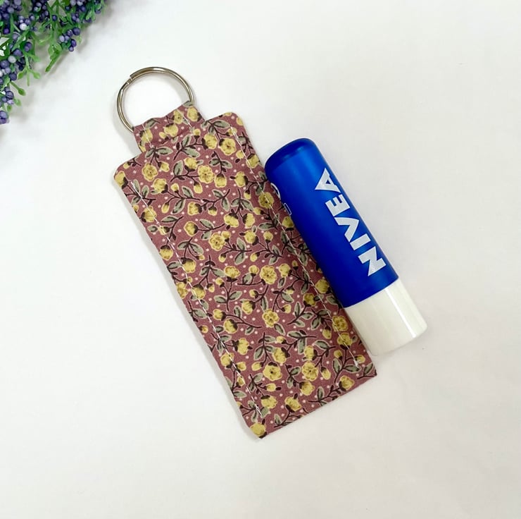 Lip balm holder measures 9cm by 4cm (excluding split ring and tab) and holds most standard sized lip balms and lipsticks.