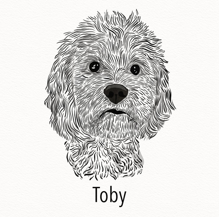 I have always wanted to illustrate my dog, and I wanted it simple and just in ink. No colour to keep it minimalist.
