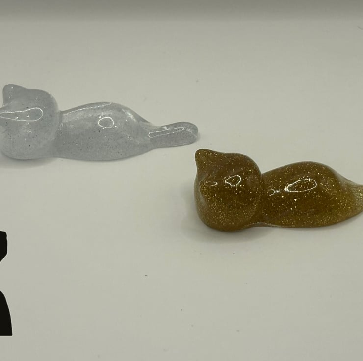 I call these my 'Friendship Kitties'. As anyone who crafts in resin knows, we hate to throw any away so all unused resin from a project becomes one of these darling little kitties. It's along the same principle as the workers in glass factories who used to make 'friendship globes' with leftover molten glass. They gave these globes to their loved ones and friends. What better way to share some love.