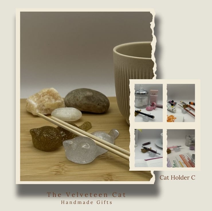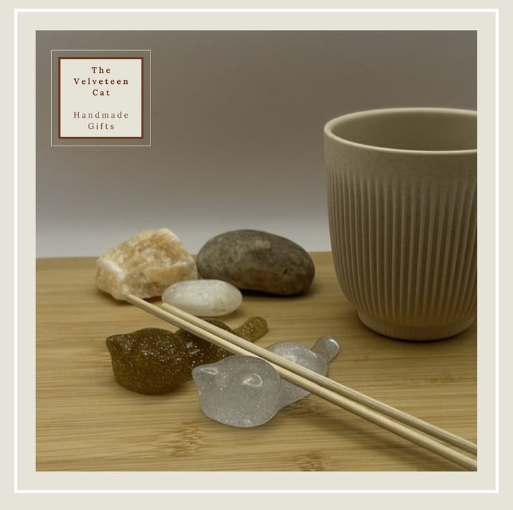 Well, hello kitty double trouble. Everyone must know someone who just LOVES CATS. This lovely set of cute little cat holders made with eco friendly resin, can be used in an array of situations. A fab place to rest your chopsticks during a delicious meal, for the writer who needs a pen holder for their writing implement. What about the artist for their paint brushes or the crafter when gluing? Not forgetting the nail artist for their gel and acrylic brushes. And applying makeup - they make a great rest for those brushes too. Or simply give as a little gift to someone as they can be customised using permanent vinyl with up to 8 characters - refer to pics for example. They really do have so many versatile uses but let's face it, they are simply cute on their own.