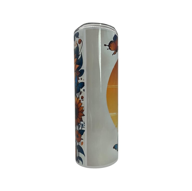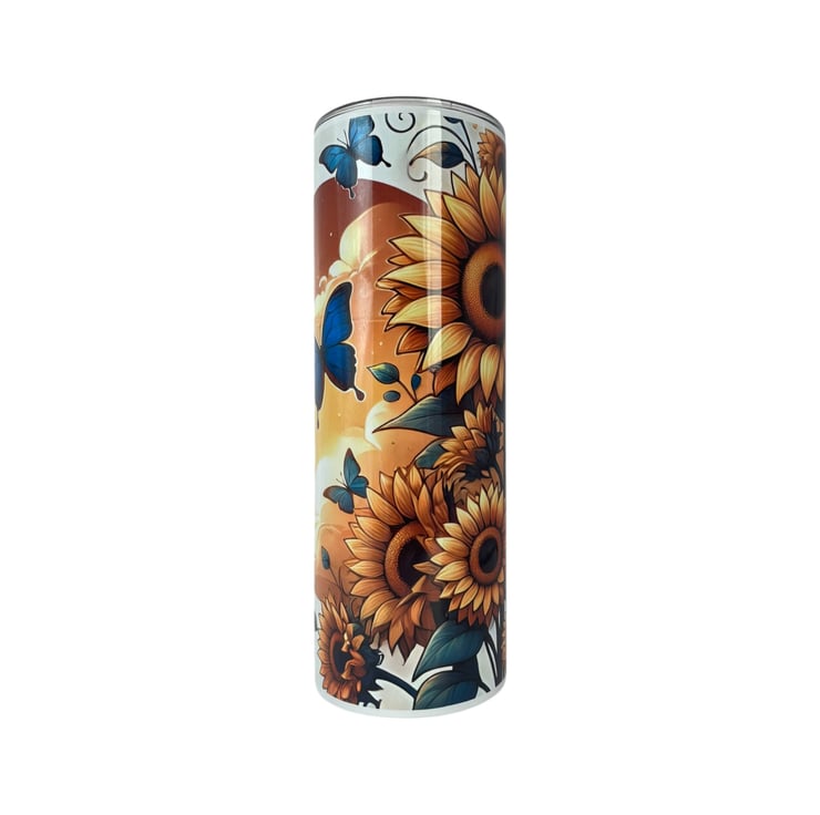 This drinks bottle with a lid and straw is elegantly adorned with a vibrant sunflower design that captures the essence of summer and joy all year round that is sure to brighten your day.