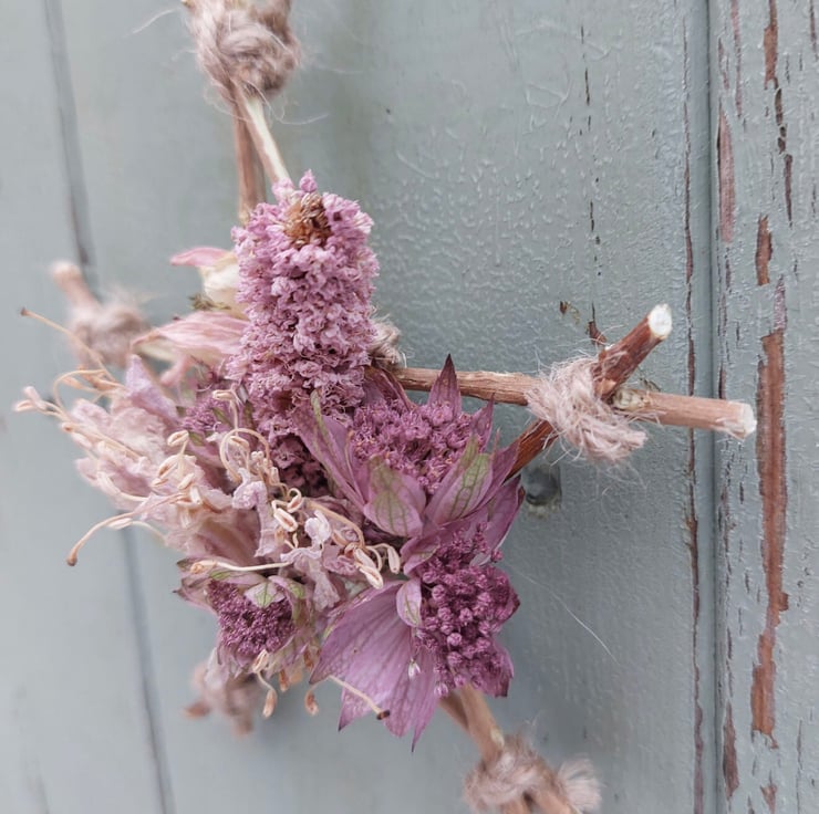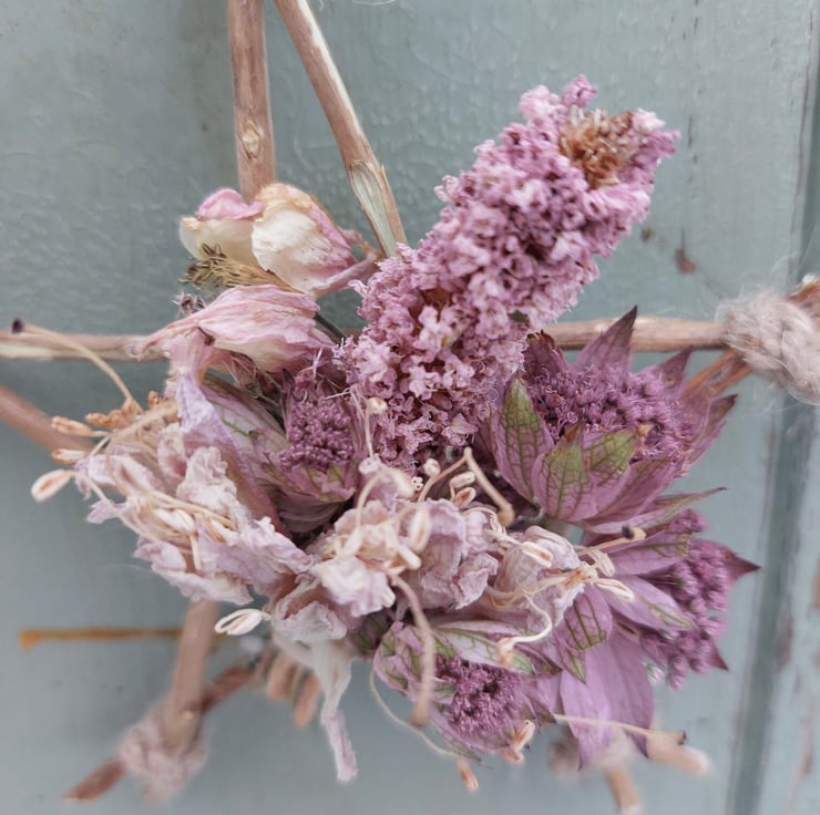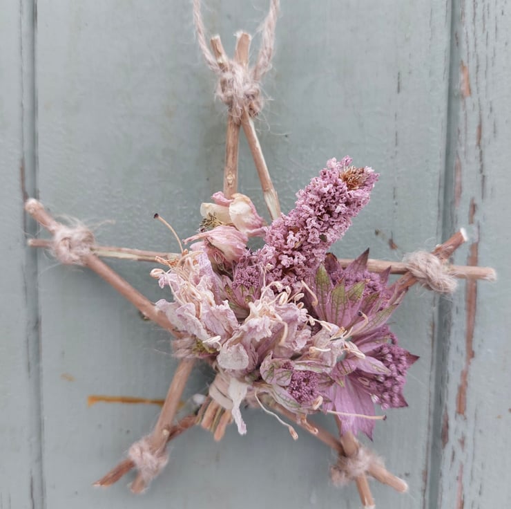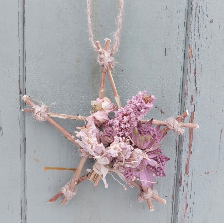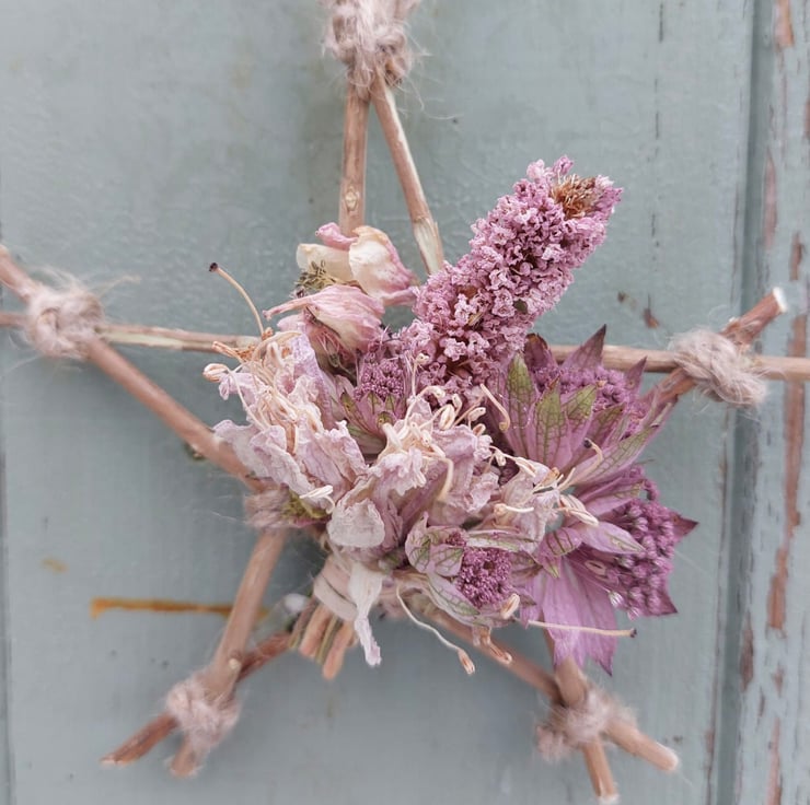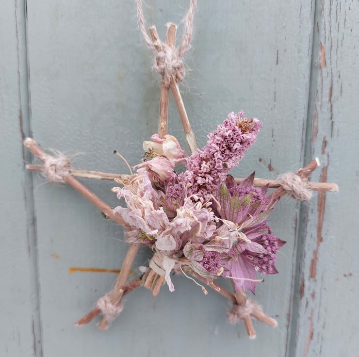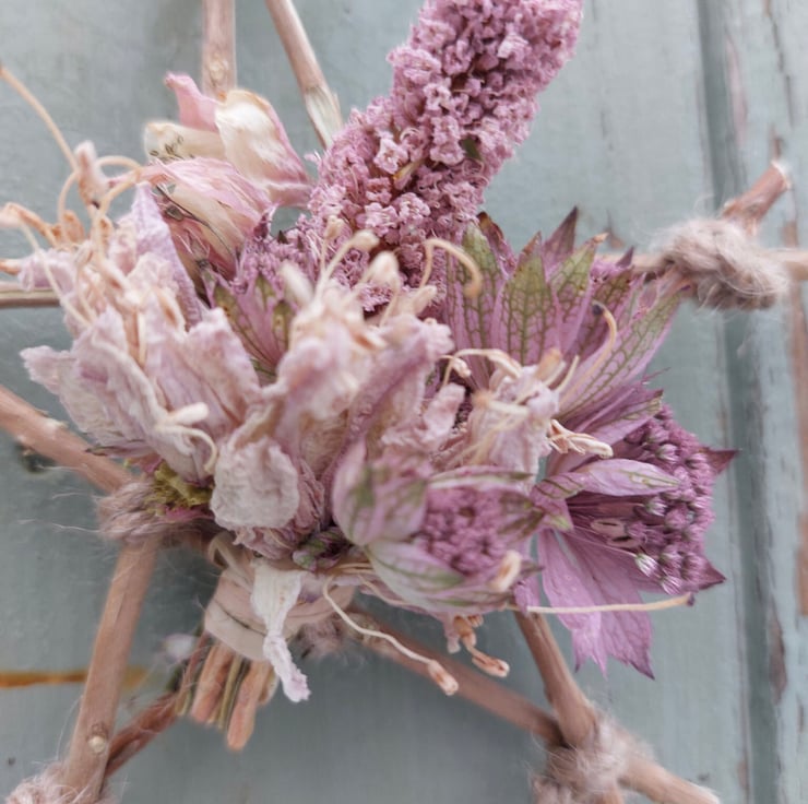 A handmade dried flower star measuring approximately 12x12cm at it’s widest points.