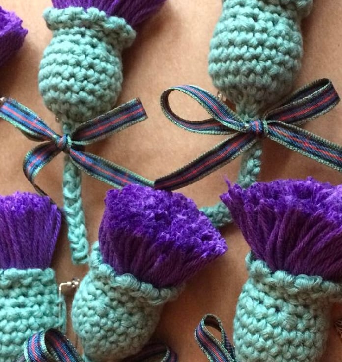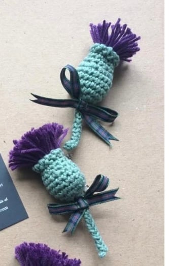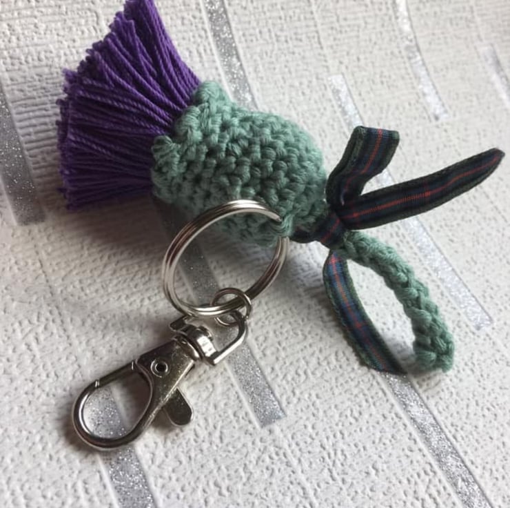 Handmade crochet thistle brooch or Keyring. These make perfect small gifts to send, or to pop on a table setting and give as wedding favours. You have the option of having the clasp for a brooch or you can choose a Keyring fastener if you prefer, just make your choice at checkout.