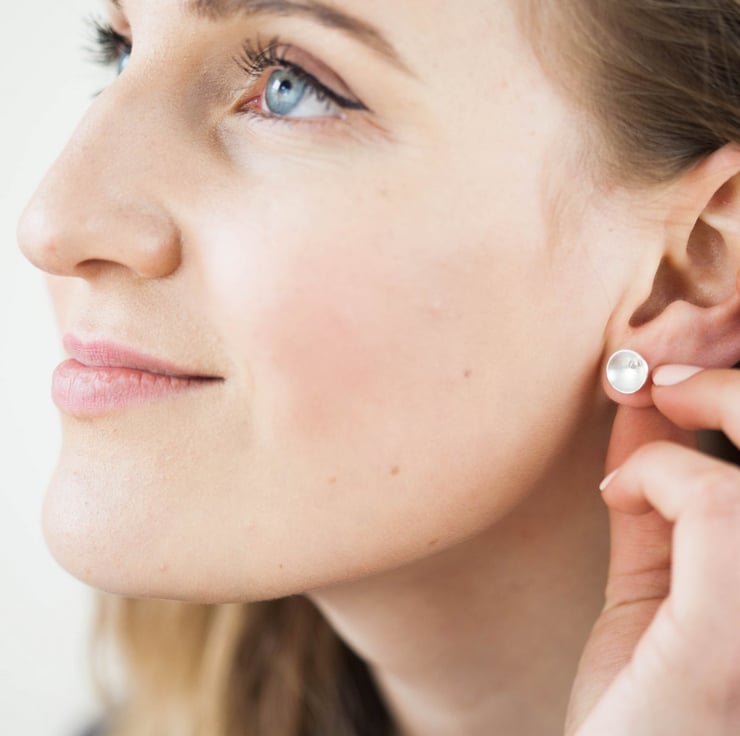 Like a pearl plucked from the blue ocean by your lover, these round brushed silver earrings are a treasure that can be worn. As these round earrings go with your entire wardrobe they’ve proved very popular as bridesmaids gifts.