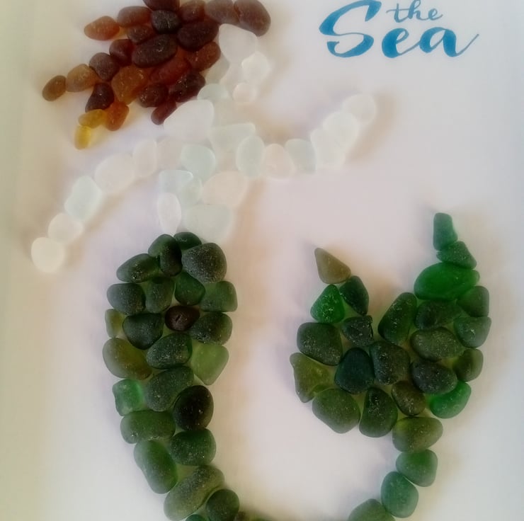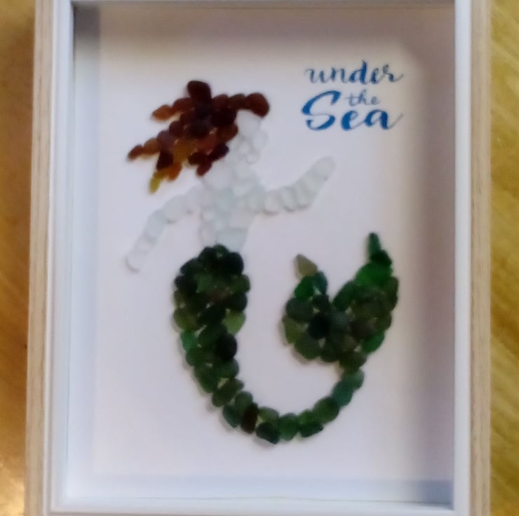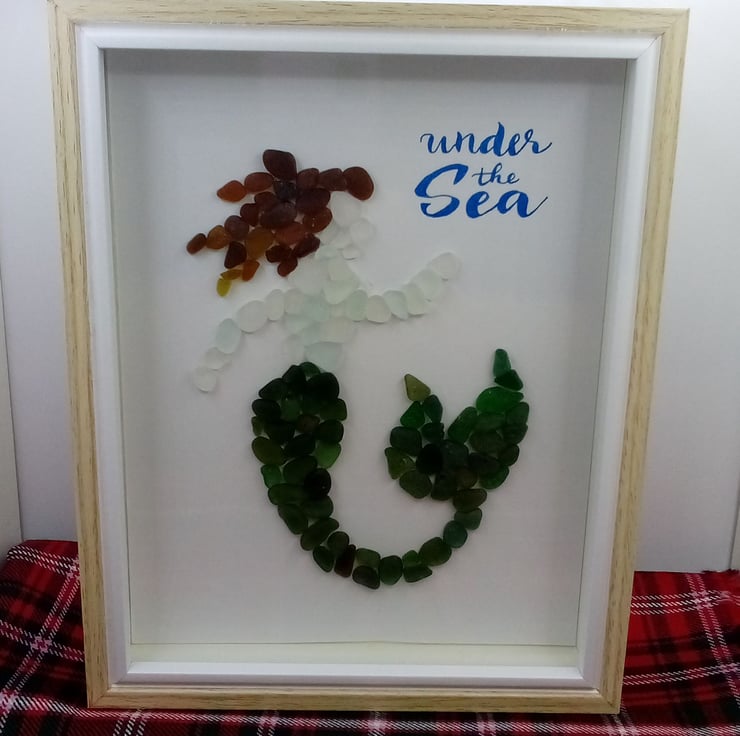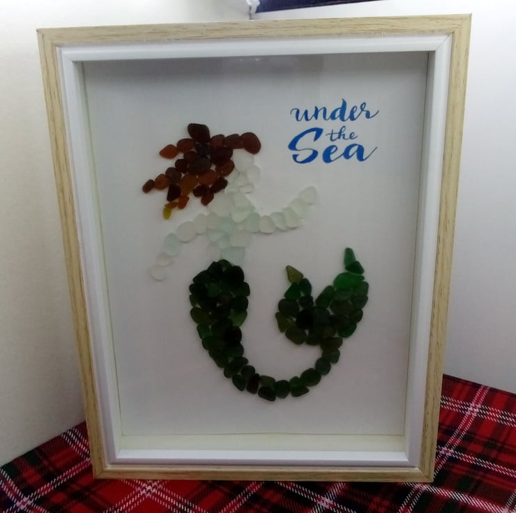 I am Scottish and most of my art is made with Scottish Seaglass. This one uses some gorgeous smooth seaglass pebbles we found on our holidays to Seaham in England.