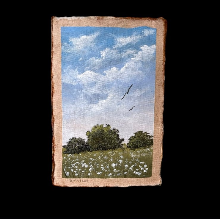 Original acrylic landscape painting on handmade cotton paper