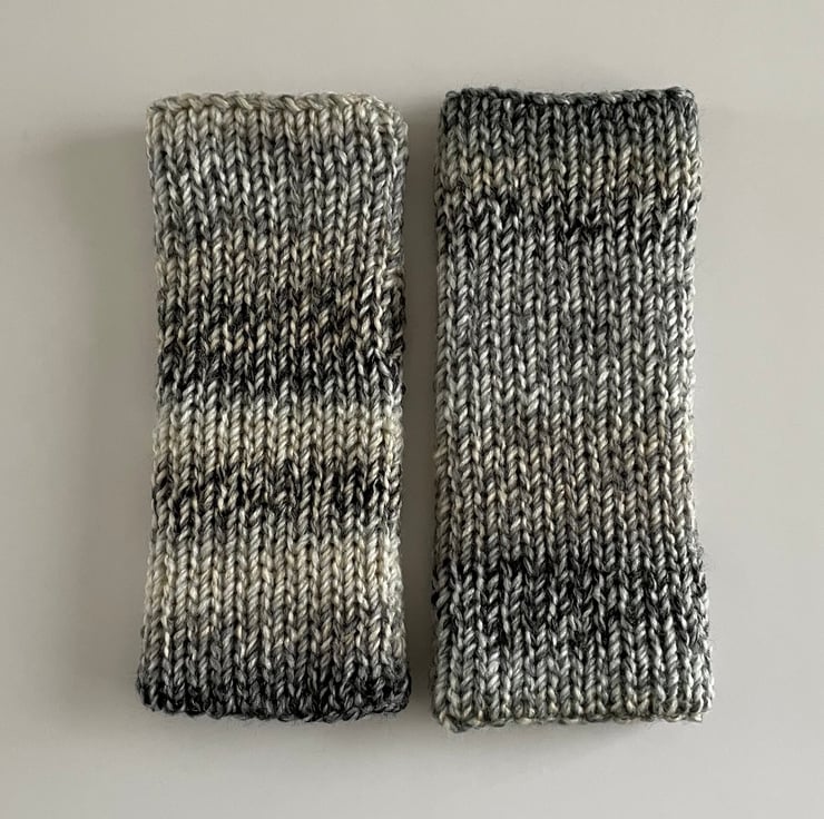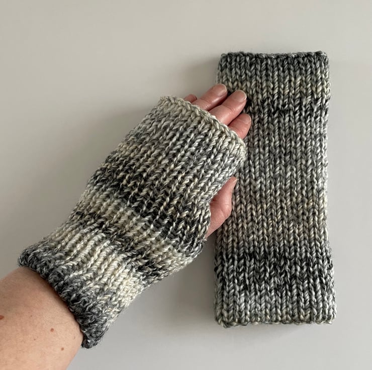 These fingerless gloves are double layered, so they will keep your hands warm and cosy. When you need to use your hands, simply place your thumb inside, pull them further down your arm and wear them as wrist warmers.