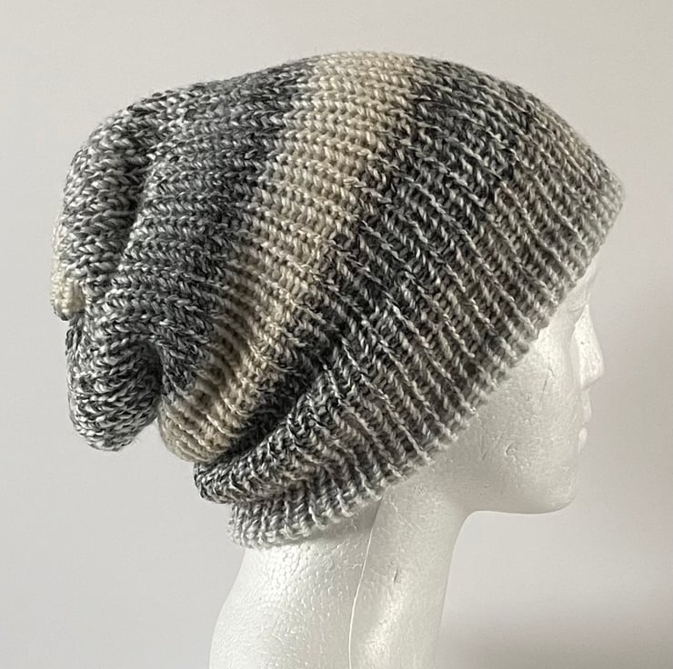 Stay warm and stylish this winter with this beanie. Handmade with love, this double-layered knitted hat is perfect for adding a touch of casual chic to a winter wardrobe. The lightweight design makes it comfortable to wear all day long, while the acrylic material keeps you warm and cosy. The beanie features an ombre pattern, making it easy to pair with any outfit. Whether you're running errands or heading out with friends, this hat is sure to turn heads.
