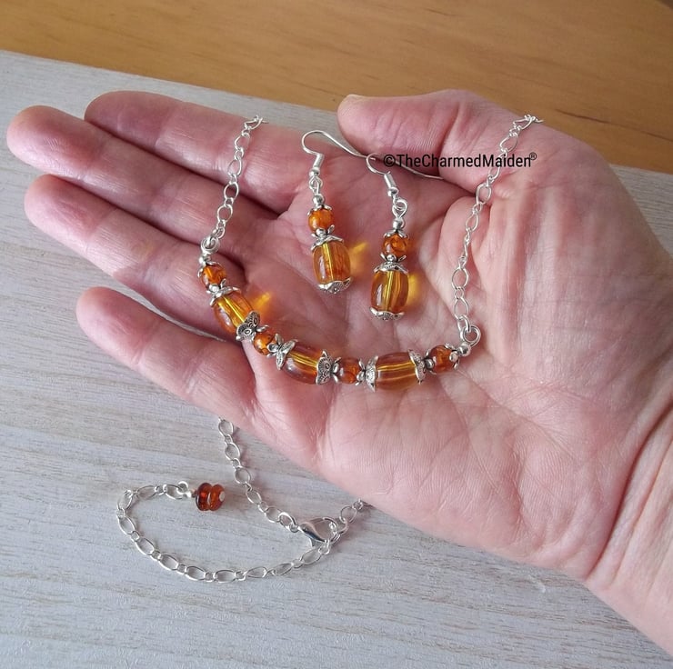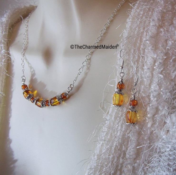 Necklace is available to purchase as is or with matching bead drop earrings. Earrings are finished with silver plated ear wires & are for pierced ears.