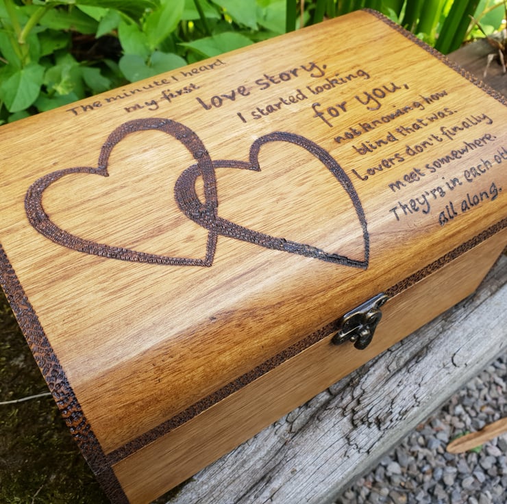 Valentines gift, lovers keepsake wooden chest, with quote, can be personalised.