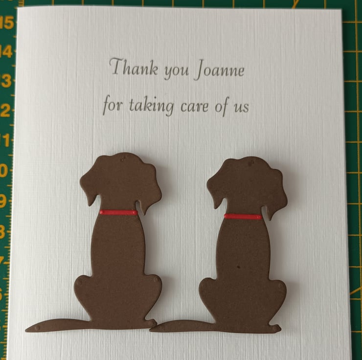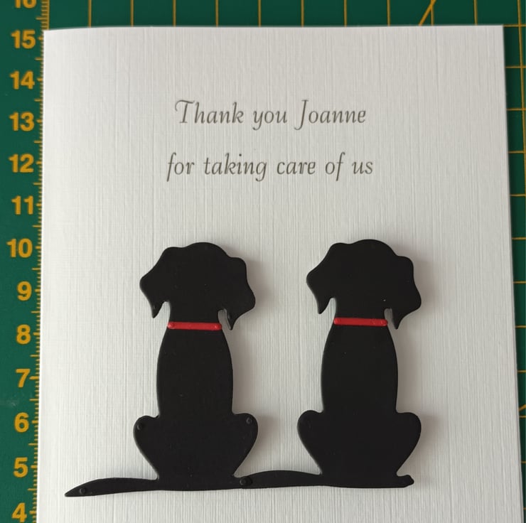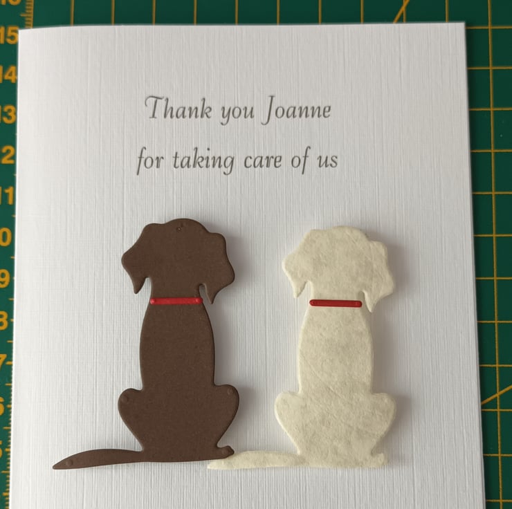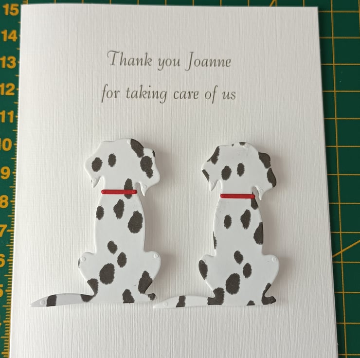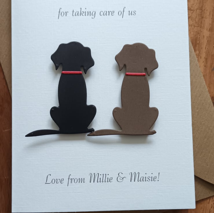 Thank you card for a dog carer, walker, groomer or boarder. I can do a single or a combination of 2 Black, Brown, Golden or Dalmatian types as shown in the photo. With kraft envelope. Please choose from the 'options' above.