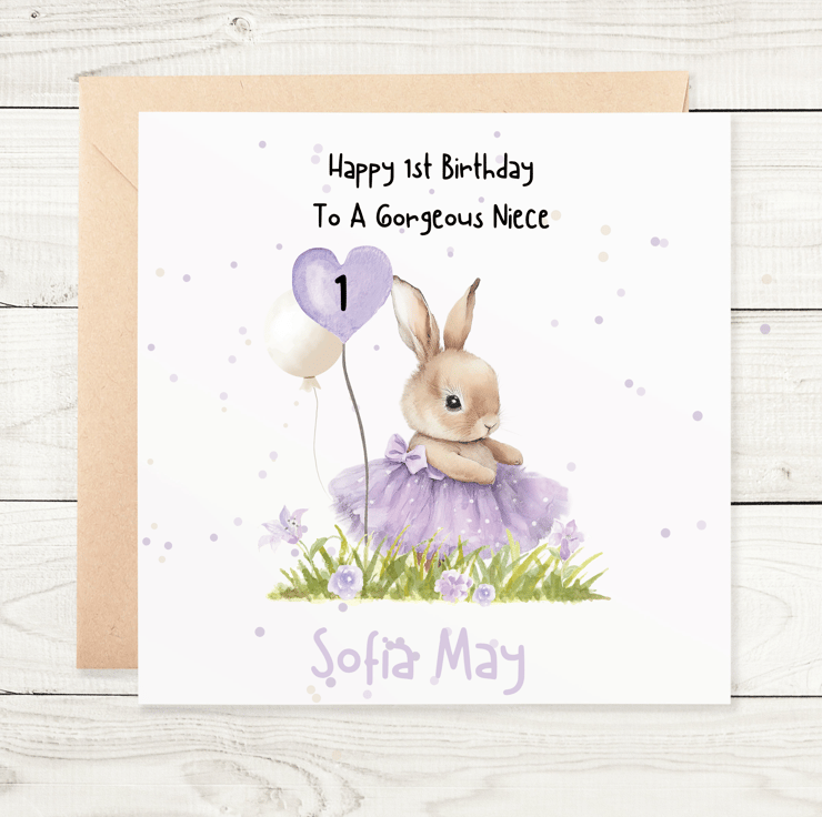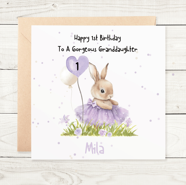 This is a lovely personalised 1st Birthday Card. The card can be made for any relation - granddaughter, great granddaughter, niece, daughter etc.