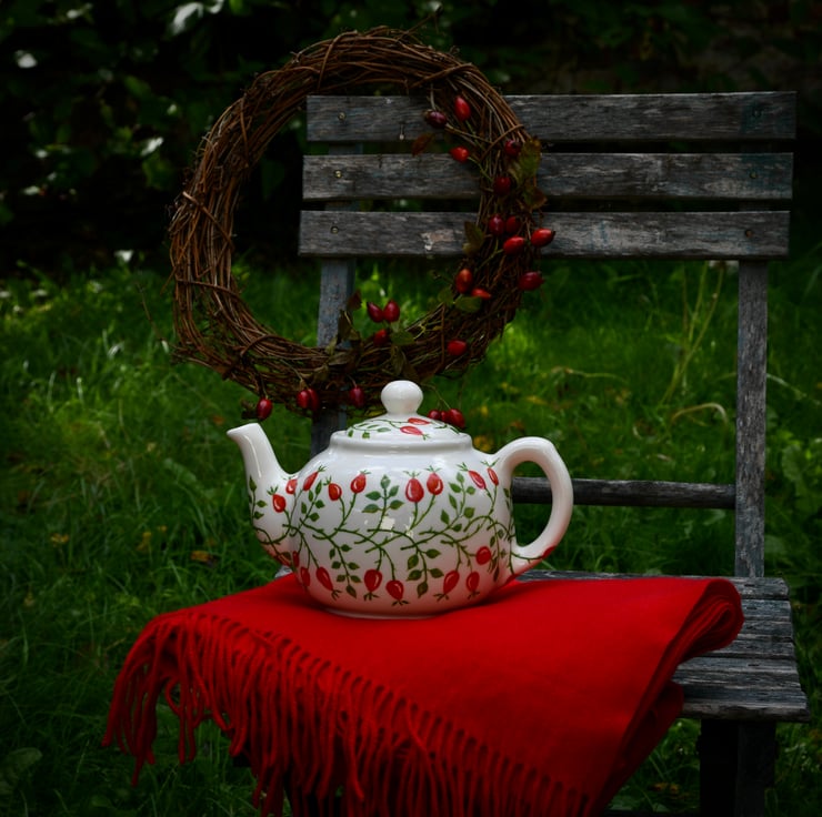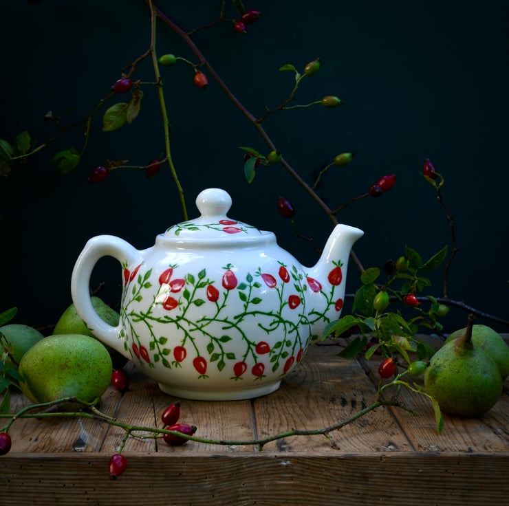 Rose Hip Teapot is covered in hand painted Rose Hips, perfect for a Autumn teatime treat.