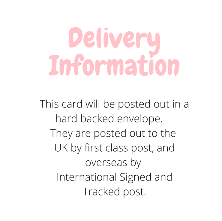 The card will be posted out by first class post and posted in a hard backed envelope, to ensure it reaches you in perfect condition.