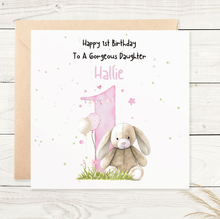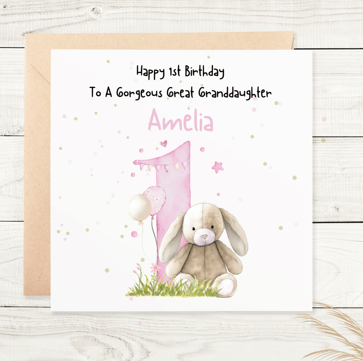 This is a lovely personalised 1st Birthday Card. The card can be made for any relation - granddaughter, great granddaughter, niece, daughter etc.