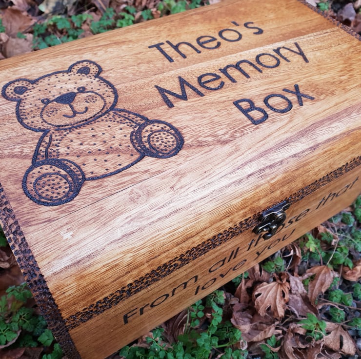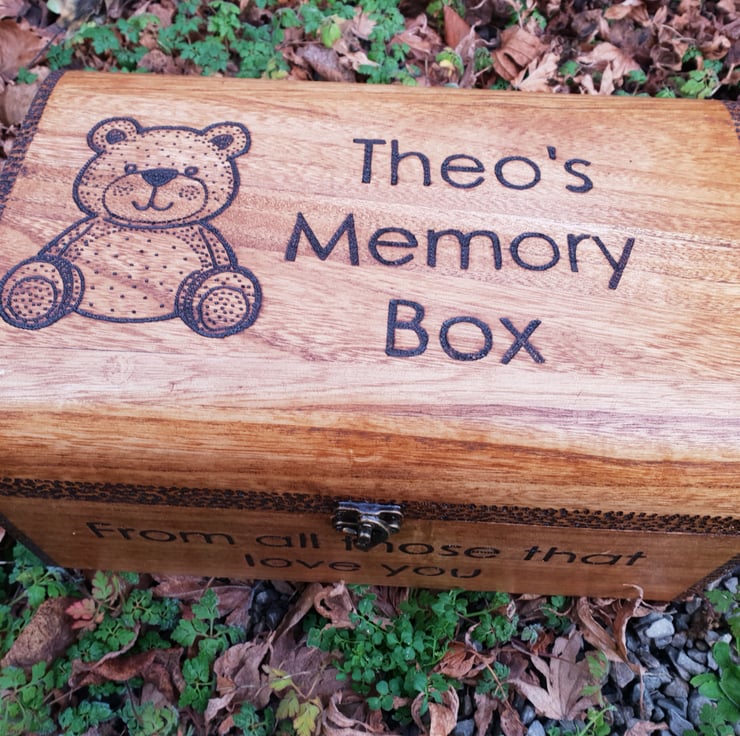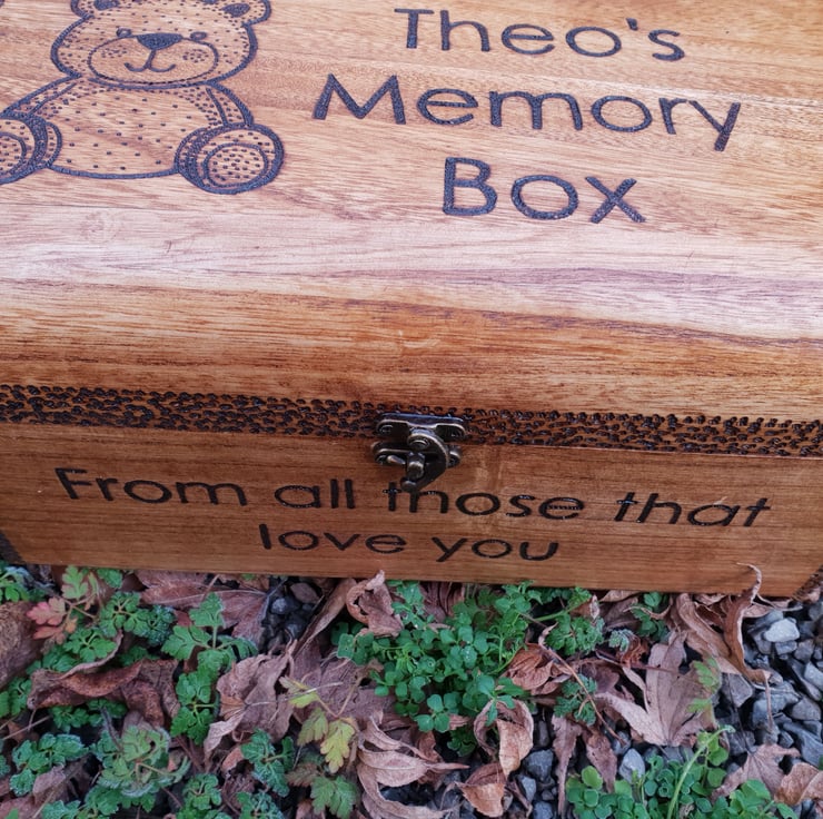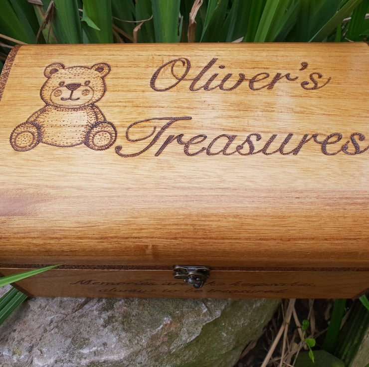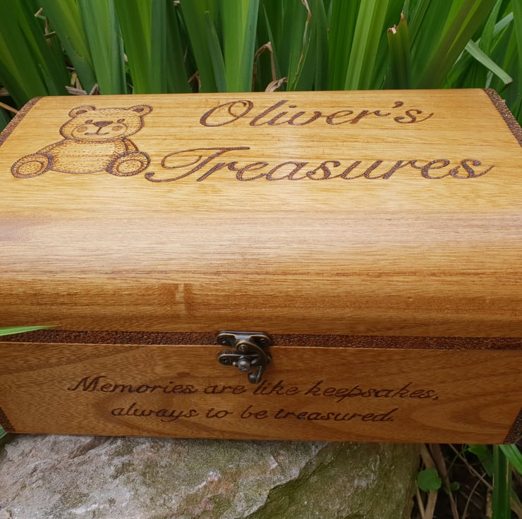Beautiful wooden chest that would make a much cherished keepsake box. Let me know what name you would like added to the box and if you would like a different graphic