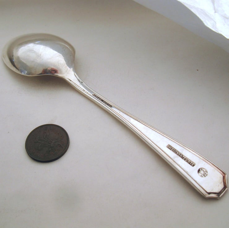 This can be personalised (extra charge applies) since there's as yet nothing in the bowl. Just message me with your preferred wording. Or I do have another one with a 'B' monogram so if you can think of a better idea for the handle, do let me know!