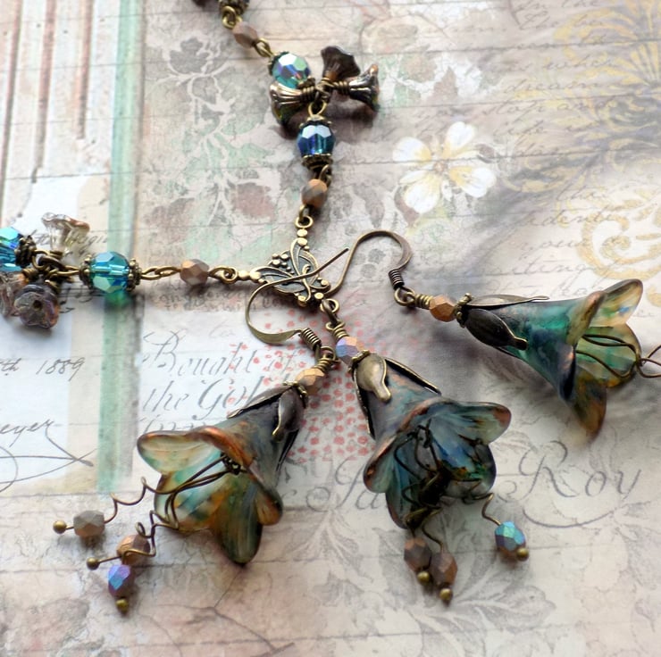 I have used a complex mix of colours to create this beautiful antiqued look range of jewellery, exclusive to English Vintage Design.