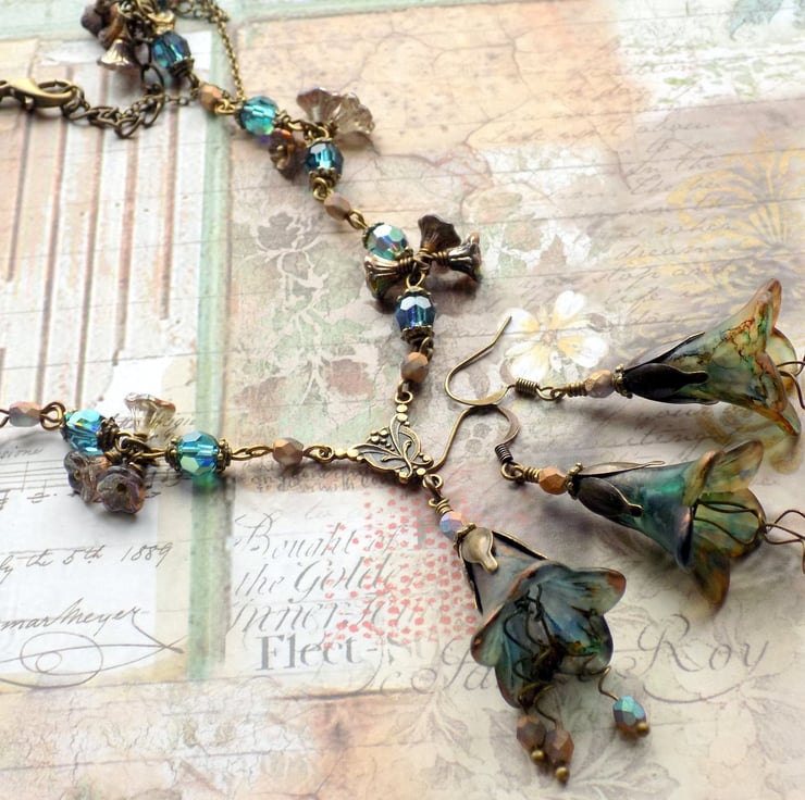 I have used a complex mix of colours to create this beautiful antiqued look range of jewellery, exclusive to English Vintage Design.