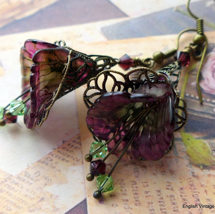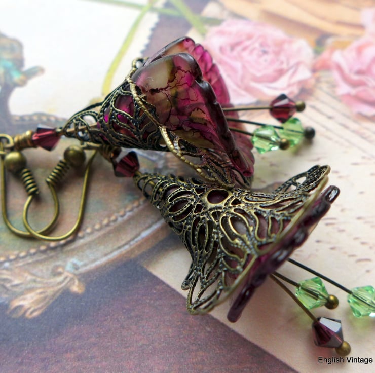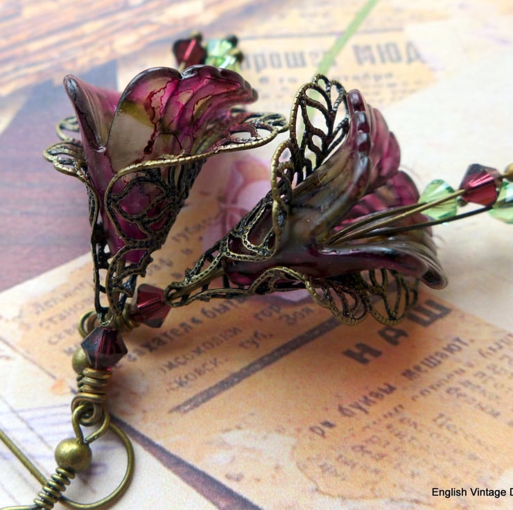 These are my medium lily flower range (20 x 21mm) beads, with stamens of Swarovski crystals and surrounded by beautiful lacy, bronze filigree wraps, extremely elegant and lightweight to wear.