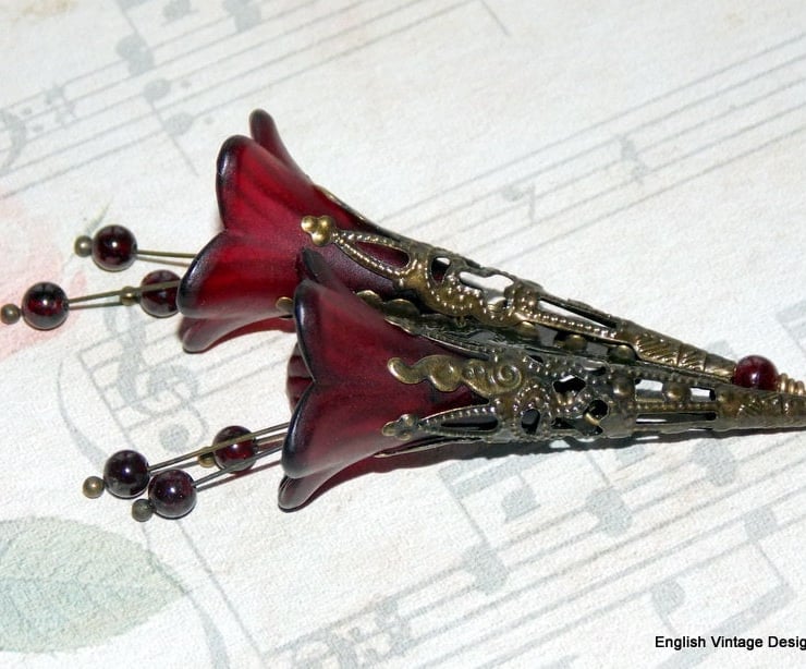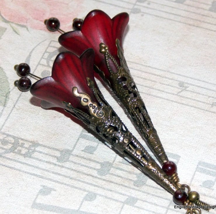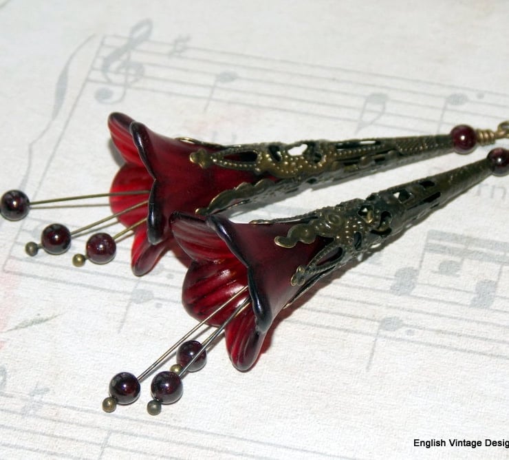 Hand Painted Lucite Flower Earrings, exclusive to English Vintage Design. These are my larger bellflower range, which will certainly get you noticed!