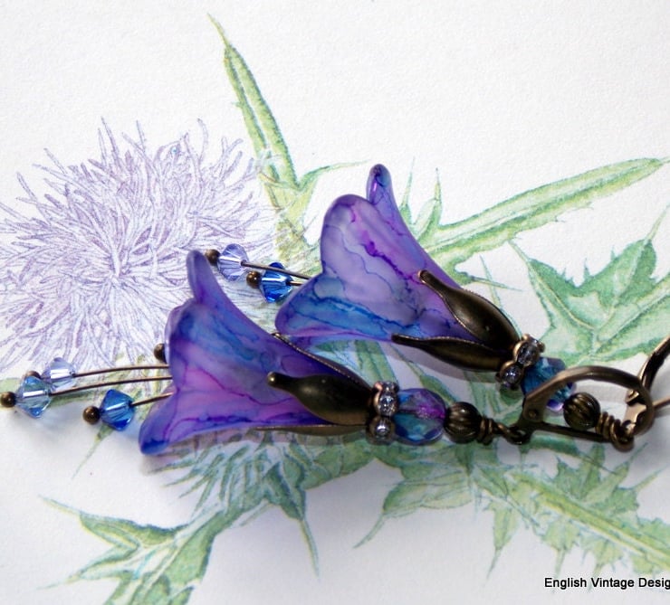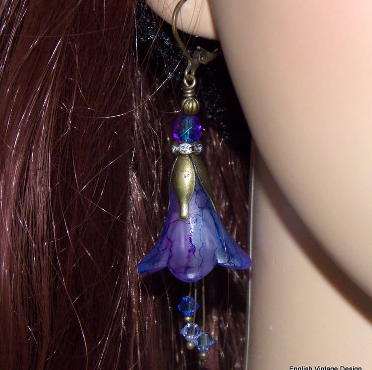 Hand Painted Lucite Flower Earrings, exclusive to English Vintage Design. These are my larger bellflower range, which will certainly get you noticed!
