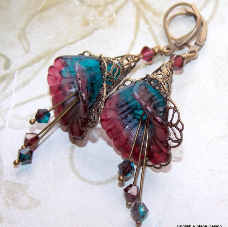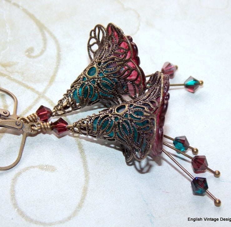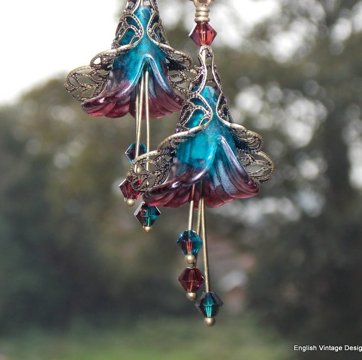 These are my medium lily flower range, with stamens of Swarovski crystals and surrounded by beautiful bronze lacy, filigree wraps, extremely elegant and lightweight to wear.