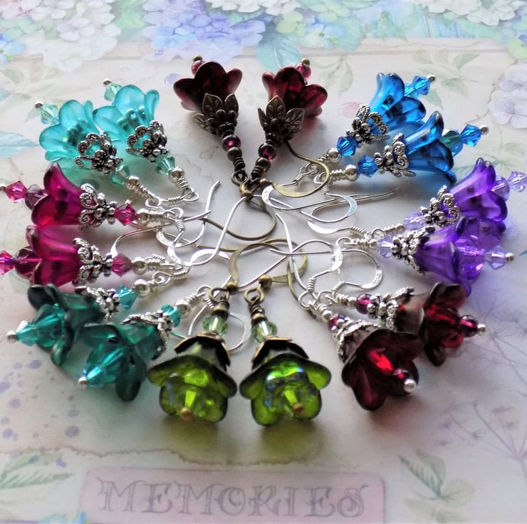 The last two pics show the difference in size of the 3 Cranberry Copper Earrings. Pixie Cups being the smallest, then Fairy Bells, and the largest are the small bellflowers.