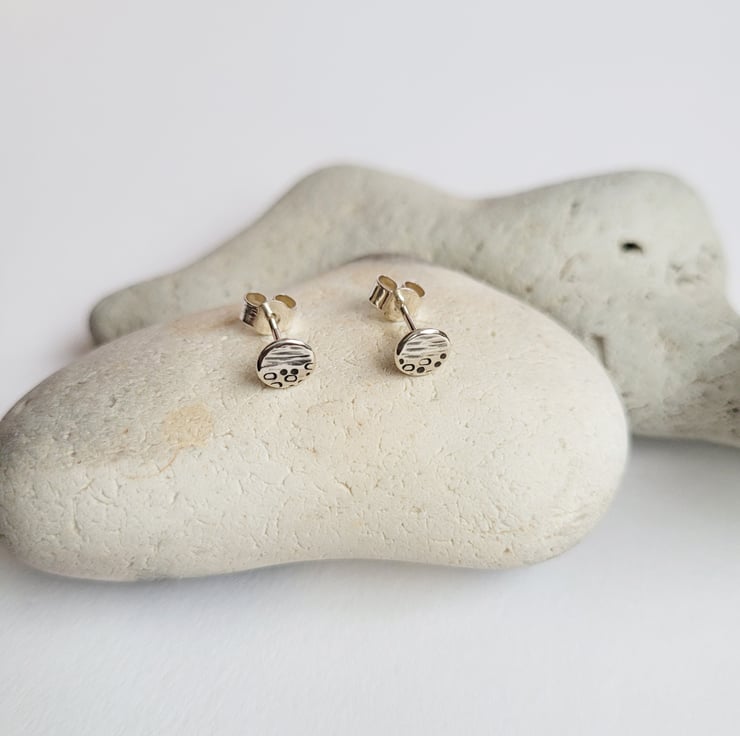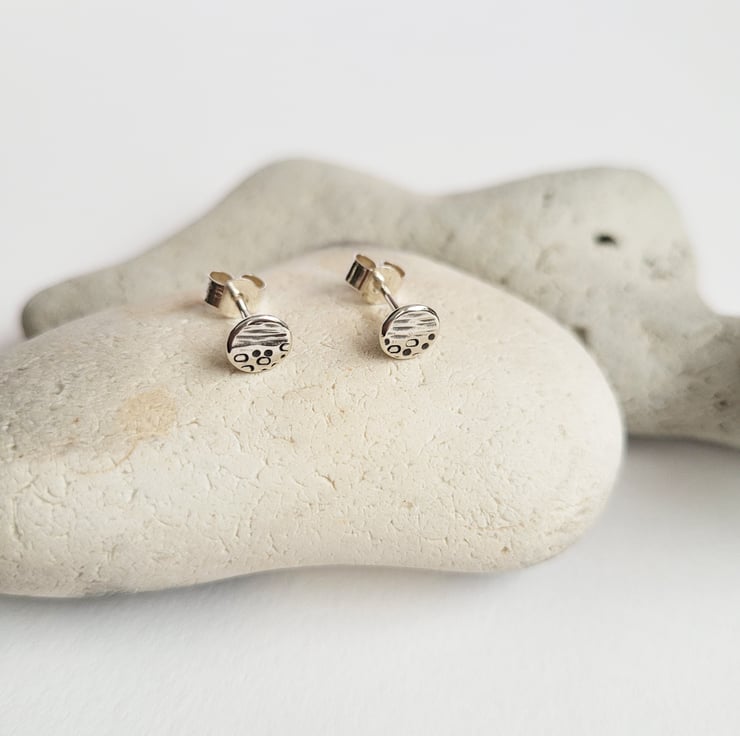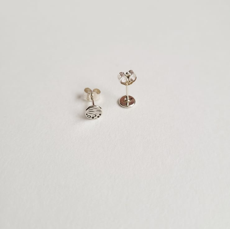 These tiny circle studs measure just 5mm across. Finished with scroll backs.