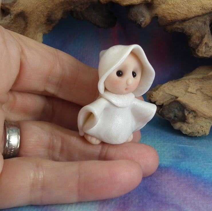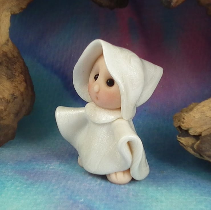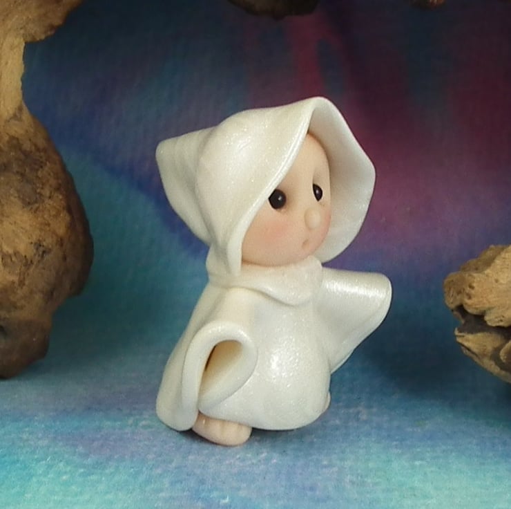 This is a 'one of a kind' creation having been entirely handmade without the use of moulds here at my studio on the Sussex Coast. Modelled with polymers, painted with heat set paints before sealing with lacquer. Ghost Gnome is just one and a half inches tall.