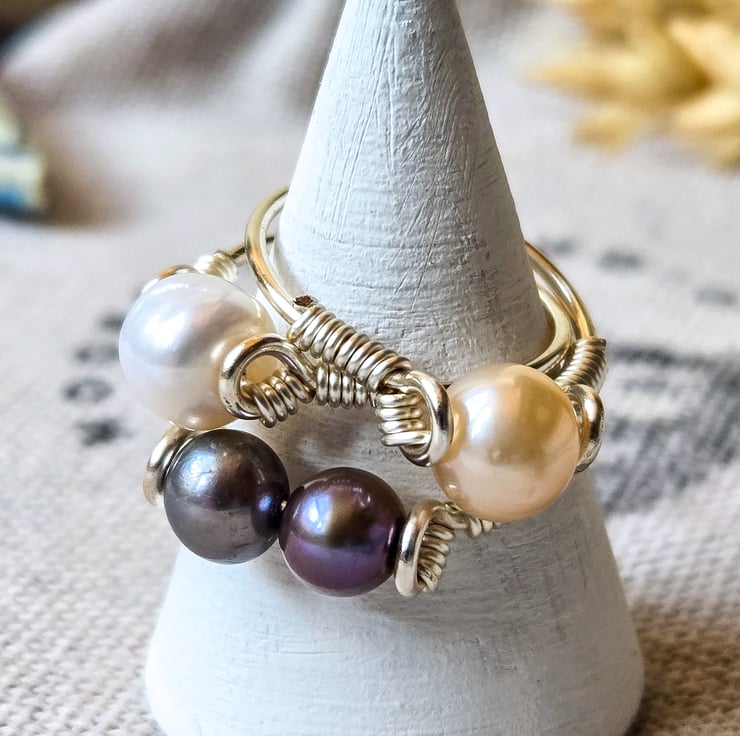 Welcome to my listing for this handmade sterling silver peacock purple freshwater pearl beaded ring!