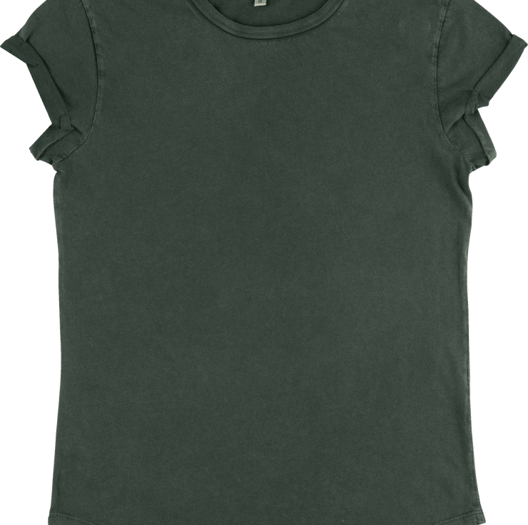 Short rolled sleeve, rounded neckline, looser fit than our bamboo tees, length to over hips, curved hemline.