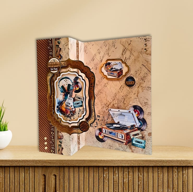 A fun-fold card with a musical theme, perfect for sending you wishes to a music lover! It can be used for various occasions like birthdays, say thank you, father's day or just because!