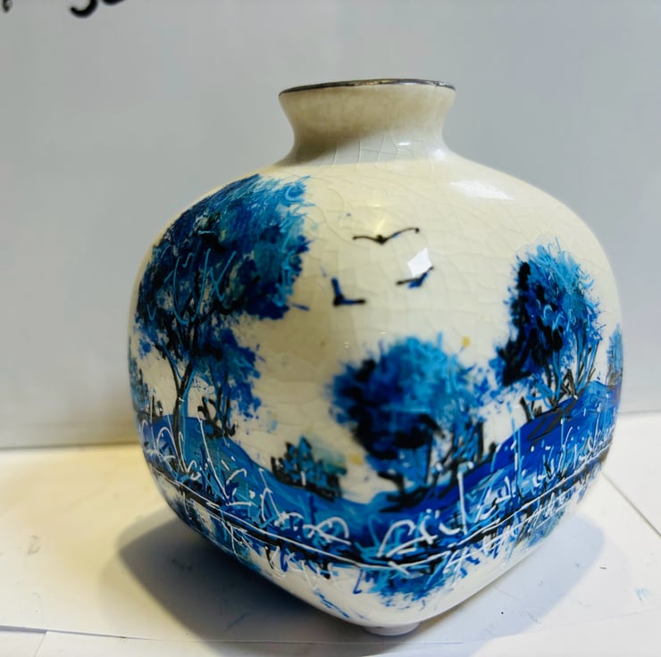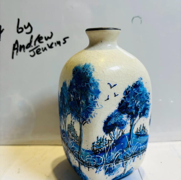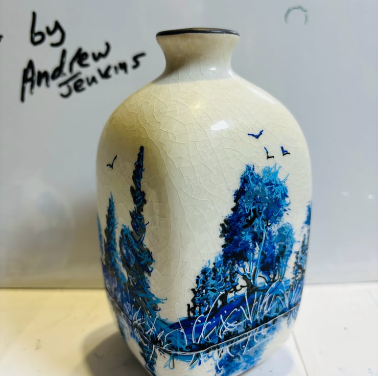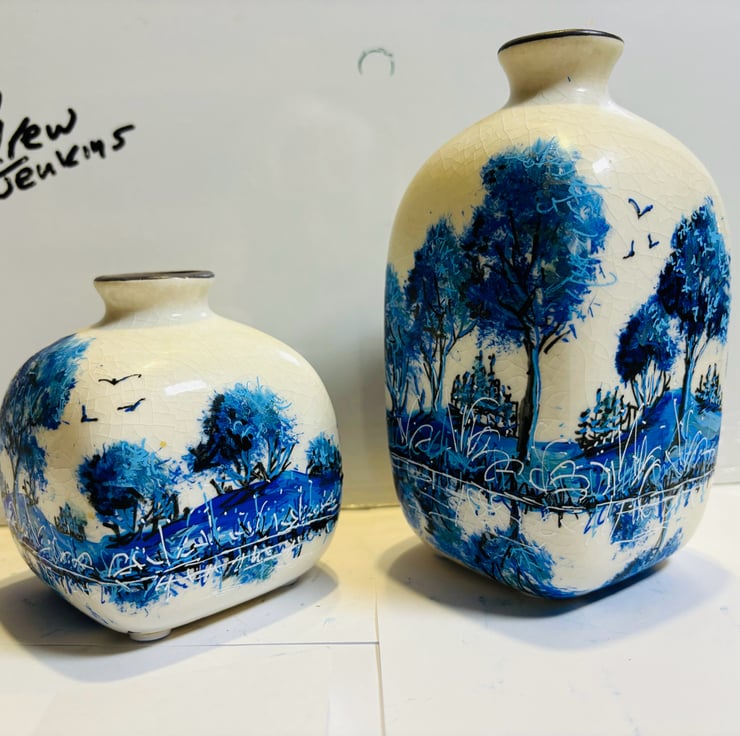 A set of hand painted and fired vases by Andrew Jenkins