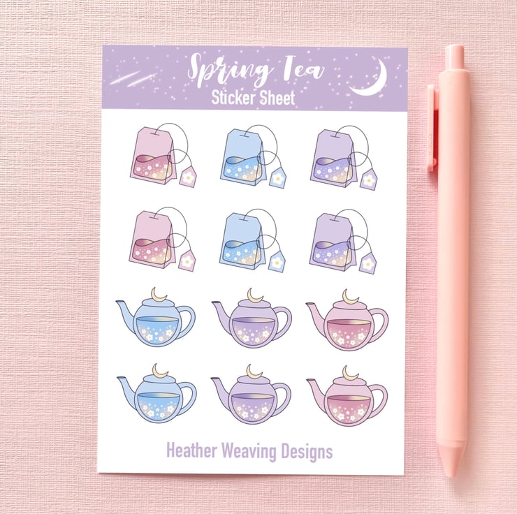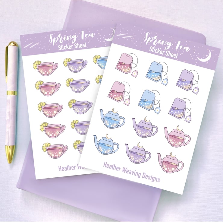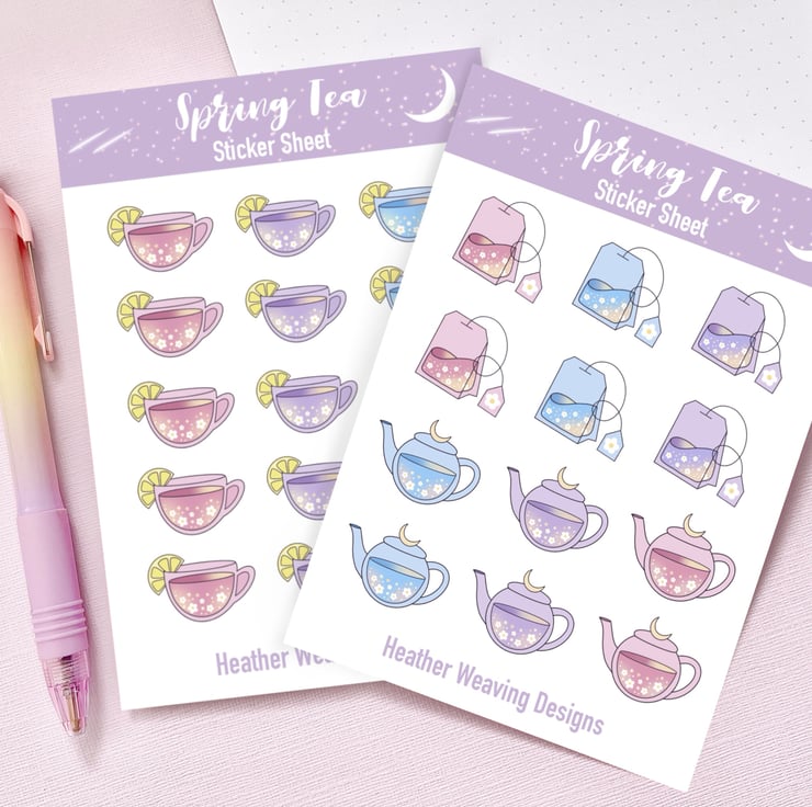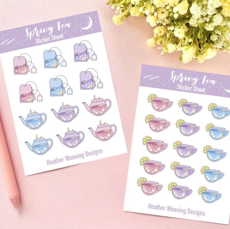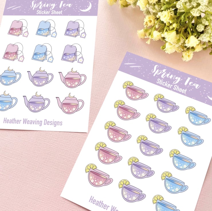 These floral spring tea sticker sheets are the perfect stickers to freshen up your diary, bullet journal, planner or calendar ready for spring and summer.