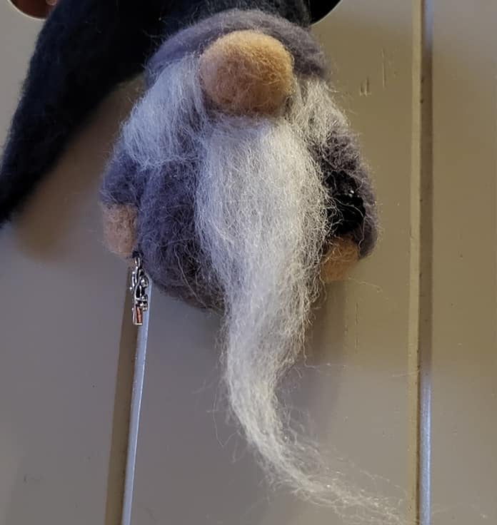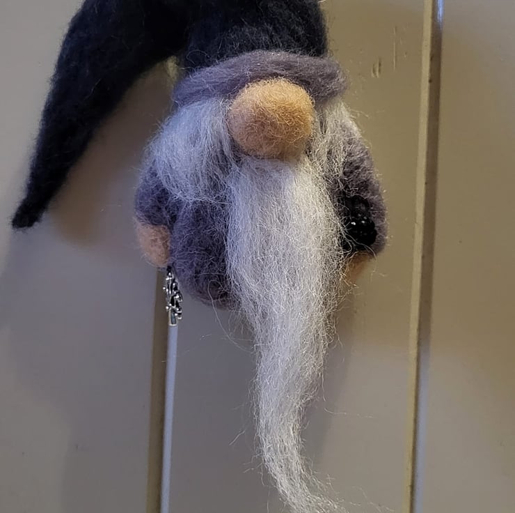 He has a long white beard and has a natural string attached ready to hang wherever you would like him to be.