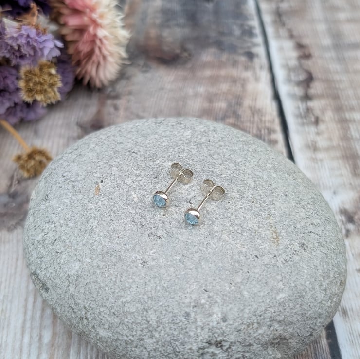 Recycled Sterling Silver Aquamarine Stud Earrings