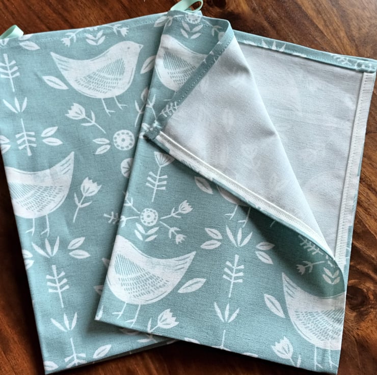 Seafoam Blue Tea Towel. Bird, Floral Scandi Style. Free Delivery