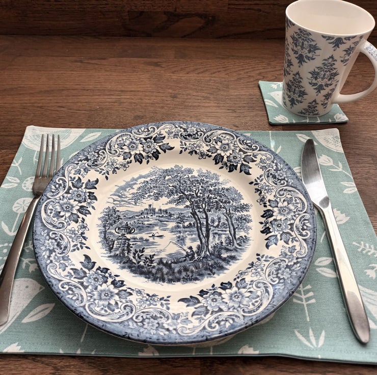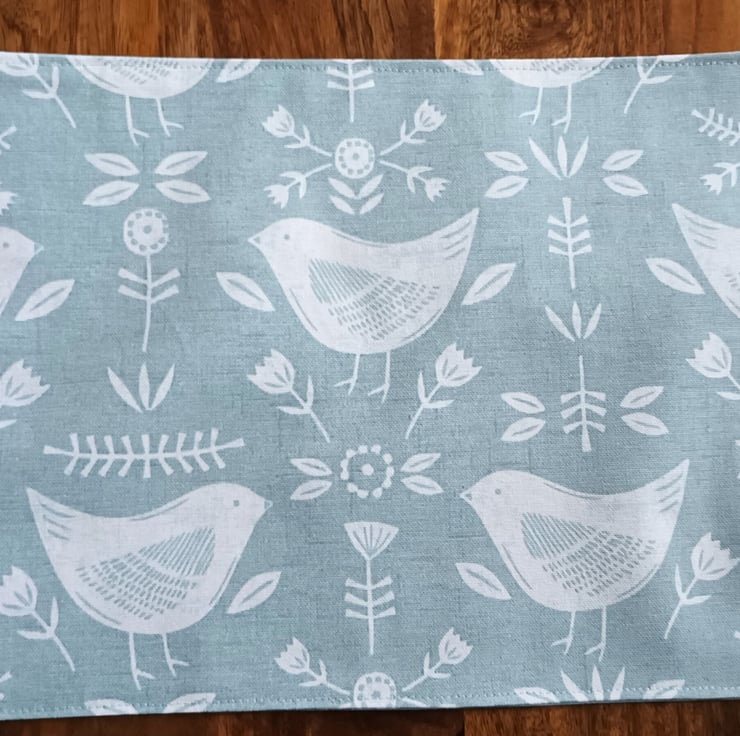 Scandi style Place Mat seafoam blue (duck egg blue), lined on the reverse with plain duck egg blue cotton fabric.