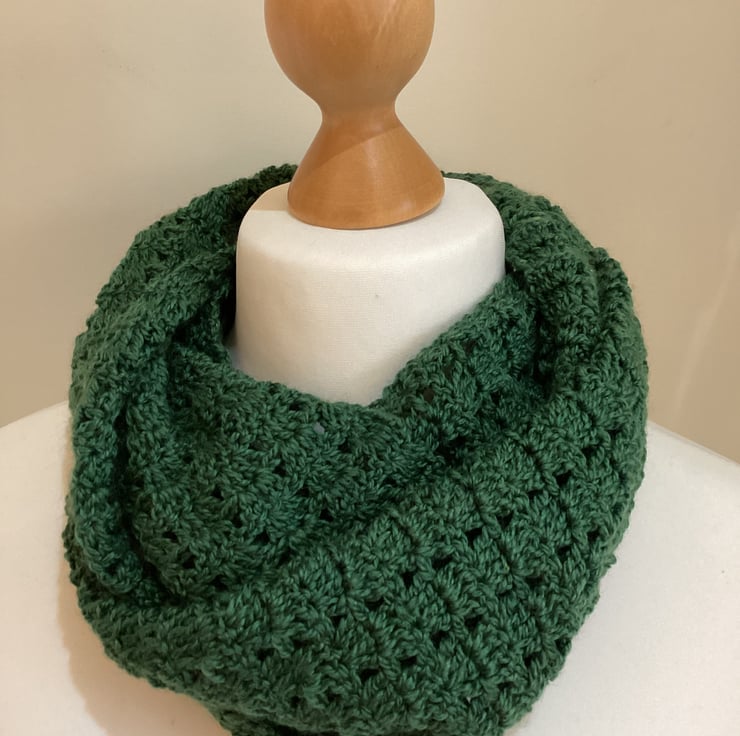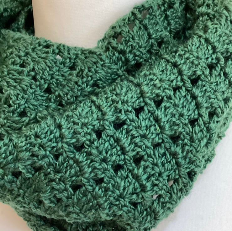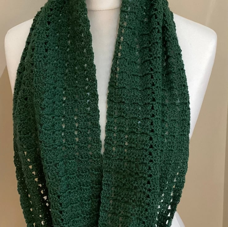 Lacy infinity scarves are crocheted in 4ply yarn.