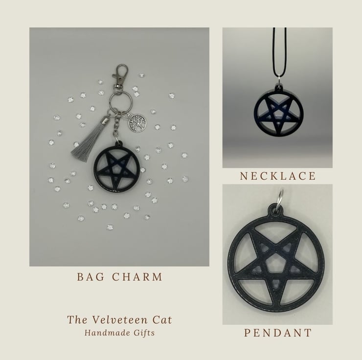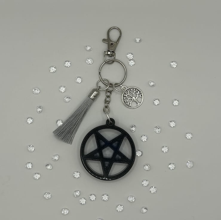 Resin 5 Pointed Star Pentacle Pendant, Keyring or Bag Charm - Various Colours