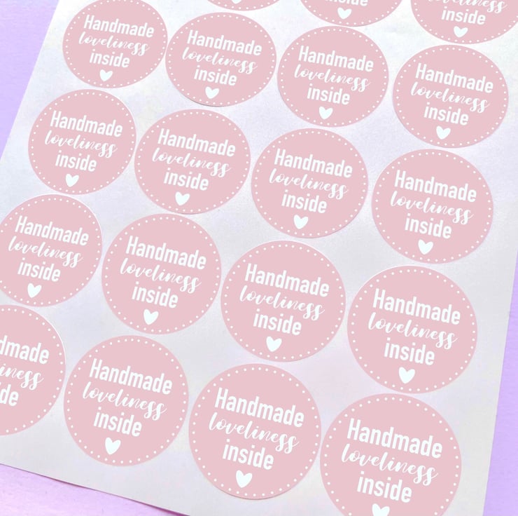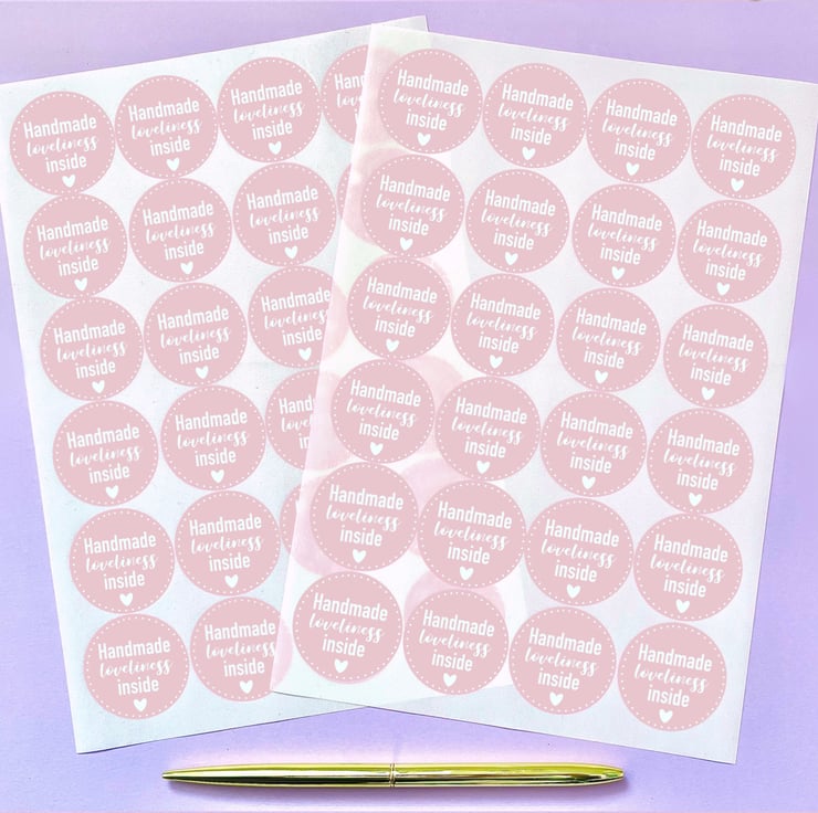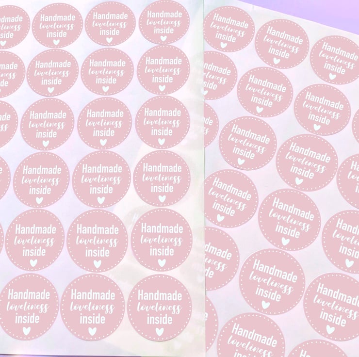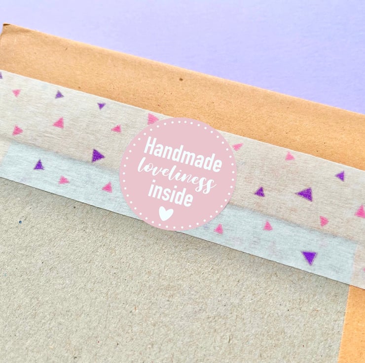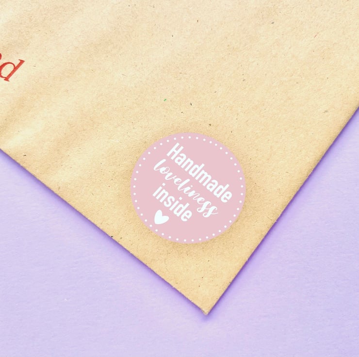 These pastel pink ‘Handmade Loveliness Inside’ packaging stickers are perfect to brighten up your small business orders.
