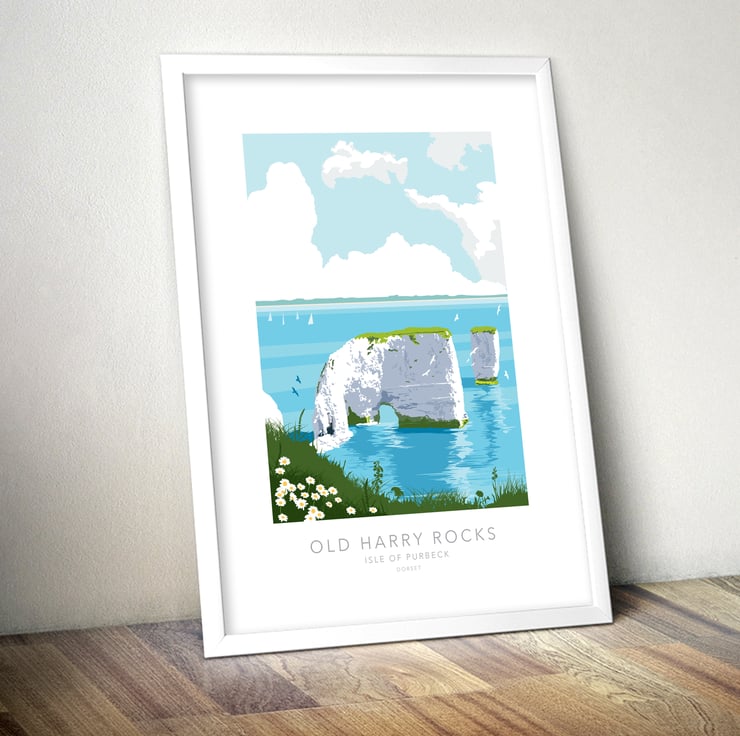A digital illustration of Old Harry Rocks, situated in the Isle of Purbeck in Dorset. This is where the Jurassic Coast starts. A very popular destination and one of my best selling prints.