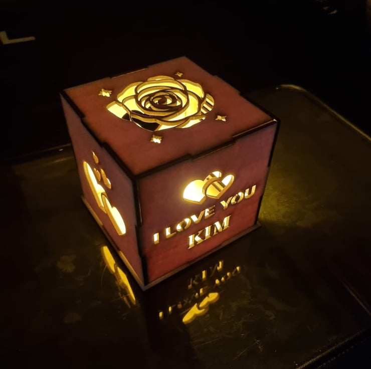 This personalized Love LED box is a beautifully handcrafted piece made from high-quality wood, designed to add a warm, romantic touch to any space. Adorned with delicate rose accents, the box features customizable engraving, allowing you to personalize it with names, a special date, or a meaningful message. The LED lights gently illuminate the box, creating a soft, glowing effect that enhances the romantic ambiance. Perfect for anniversaries, weddings, or Valentine’s Day, this unique gift combines love, craftsmanship, and personalization to make any occasion even more special