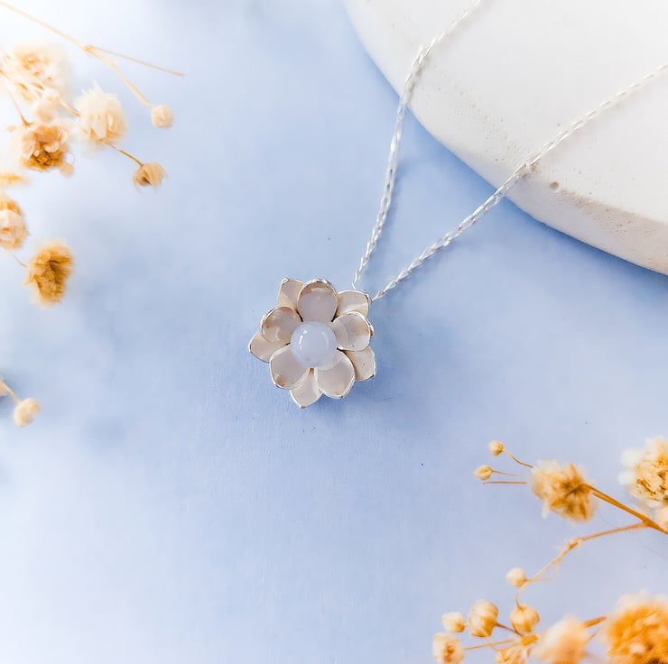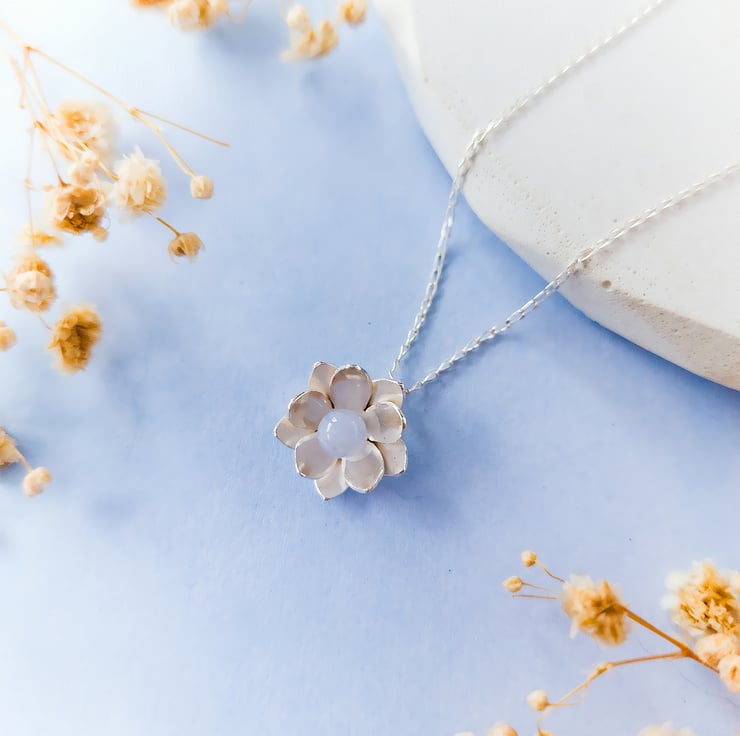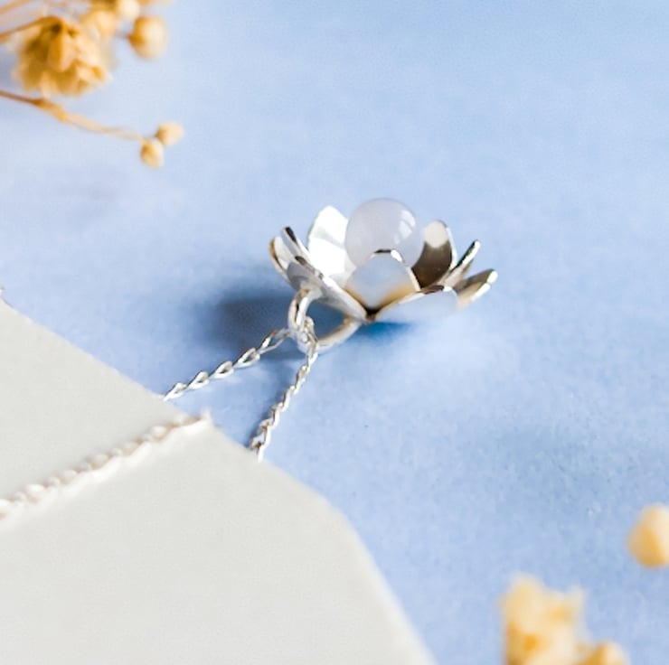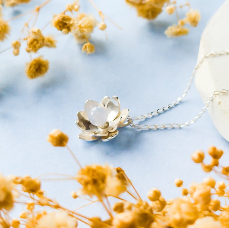 This exquisite lotus flower pendant has been lovingly handcrafted from recycled silver. Each petal is carefully pierced and soldered by hand using recycled silver, creating a delicate and timeless design inspired by the elegance of the lotus flower.